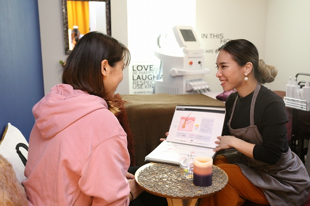 脱毛の施術をしながら、感じていた、お尻や脇の黒ずみなど、脱毛を卒業した後まで、お客様とお付き合いできるマシンだと感じ、導入を決定させて頂きました。